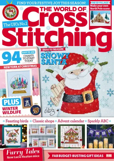 Get into the festive stitching spirit, with The World of Cross Stitching. Unleash your creativity with delightful projects like feasting birds, charming classic shops, and a magical 3D North Pole scene. Discover budget-friendly gift ideas, whimsical mice by Lucie Heaton, and easy winter wildlife charts.