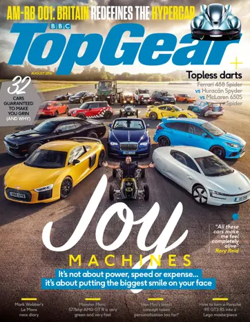 JOY MACHINES – not about power, speed or expense… it’s about smiling! | We visit the TG Track with RORY REID for our ultimate fun group test, featuring the ARIEL Atom and Nomad, AUDI R8, MAZDA MX-5, DODGE Challenger Hellcat, VW XL1 Concept, PORSCHE 911 Turbo S, TGTV’s Rallycross Mini, ROLLS-ROYCE Phantom and many more! | Also this month: meet the stunning ASTON MARTIN AM-RB 001 Concept | LAMBORGHINI vs FERRARI vs McLAREN in our War of the Spiders | Driving the new FORD GT40 to Le Mans | Day in the life of MARK WEBBER | And how to build your own supercar… by LEGO