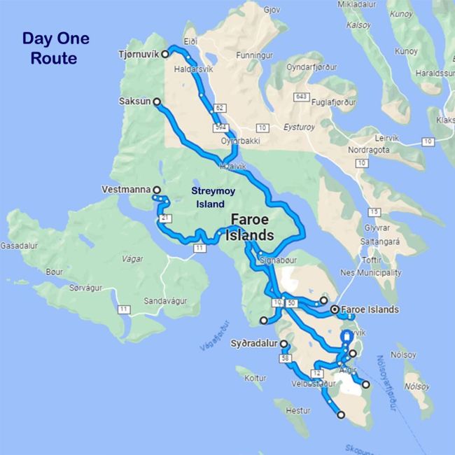 Our options are either to sail on Saturday, or to wait and sail the next Saturday. But might we like to stop off for three nights in the Faroe Islands on the way? We’ll let you know after we’ve found out where they are. After less than an hour’s research, a decision is made: yes, we will have three nights in the Faroes (300km northwest from Scotland, and 430km southeast of Iceland, we’ve discovered).