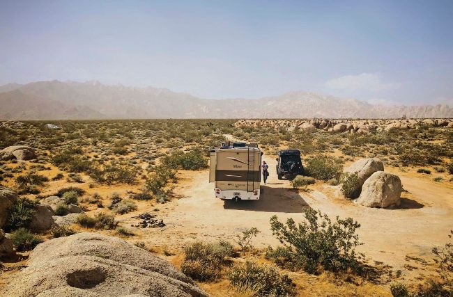 Friends influenced Brittany and Eric’s decision to shift their travel style from parking at full-hookup campgrounds to wild camping in the bush.