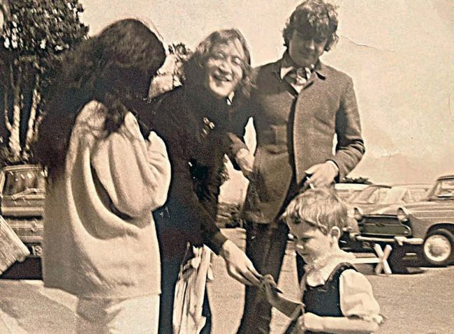 This photo clearly shows John, Yoko Ono, a man to the right of John that I recognise but fail to name, and a little blonde girl. This girl’s name is Eileen O’Sullivan. The photo was taken in County Mayo by her father around 1967 when John was either buying or had recently bought Dorinish Island off its coast.
