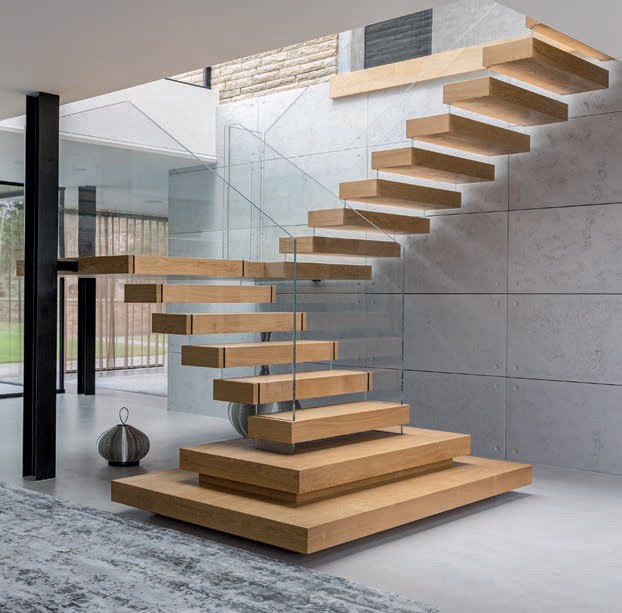 Sculptural timber stairs are a fantastic investment if you want to create a wow-factor focal point within a space. Shown left is a striking custom-built flight by Bisca.
