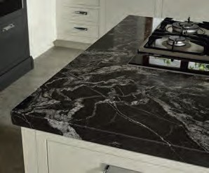 Featuring swathes of black with silver veining, this durable stone will add a luxurious flourish to your culinary zone. It’s available in a glossy polished finish or with a softer, matt effect. Strata Silver Waves 30mm granite, from £450 per m2 1909kitchens.co.uk