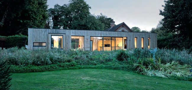 Built with CLT, this 92m2 extension to a grade II listed barn comprises a large open plan kitchen/ diner and seating area, with utility/ WC and study attached. Designed by Adam Knibb Architects, it was erected on site in five days, ready for fitting out