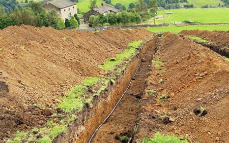Here, trenches have been dug ready for the heat collection loops to be laid. The tech for this setup was supplied by Green Building Store (