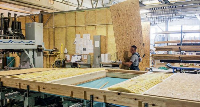 Above: Closed panel timber frames having insulation fitted in the Dan-Wood factory (www.danwood.co.uk)