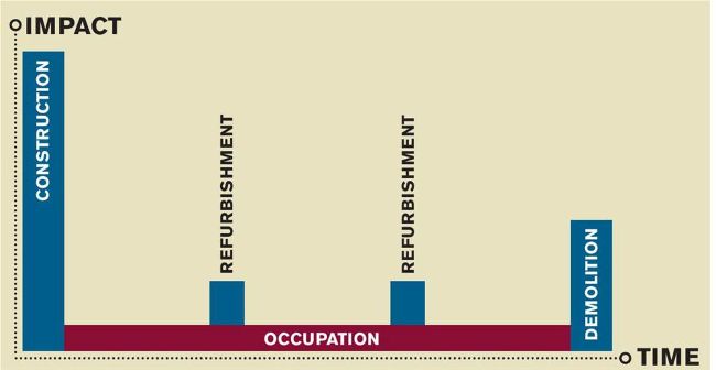 As the efficiency of new buildings increases, the impact of construction, maintenance and demolition becomes relatively larger compared to the operational energy of the in-use phase