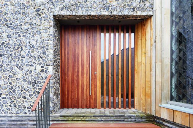 If having an oversized door isn’t quite right for your home, try pairing a feature unit with matching panels and glazing, like this gorgeous entrance by Urban Front