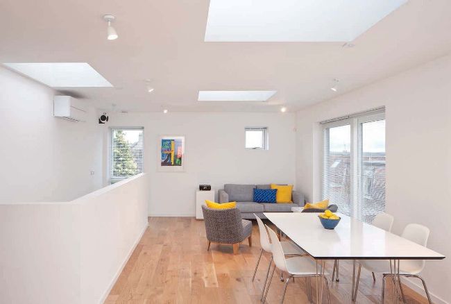 Engineered wood flooring has been laid throughout the house to create a neutral, yet characterful, effect. It also works well with the underfloor heating