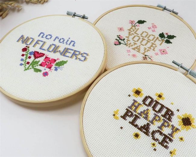 We’ve been a fan of Stitch With Skye’s original embroidery hoop art kits for a while, so we were so excited to hear that designer Jade was branching out into cross stitch kits. There are three designs to choose from: Bloom Your Way, Our Happy Place and No Rain No Flowers, or buy them all as a bundle! All kits are beginnerfriendly and come with a 6in wooden embroidery hoop which can be used for framing after you’ve finished stitching.