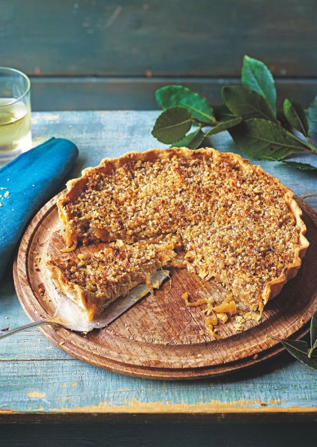 Caramelised onion tart with walnut and parmesan crust