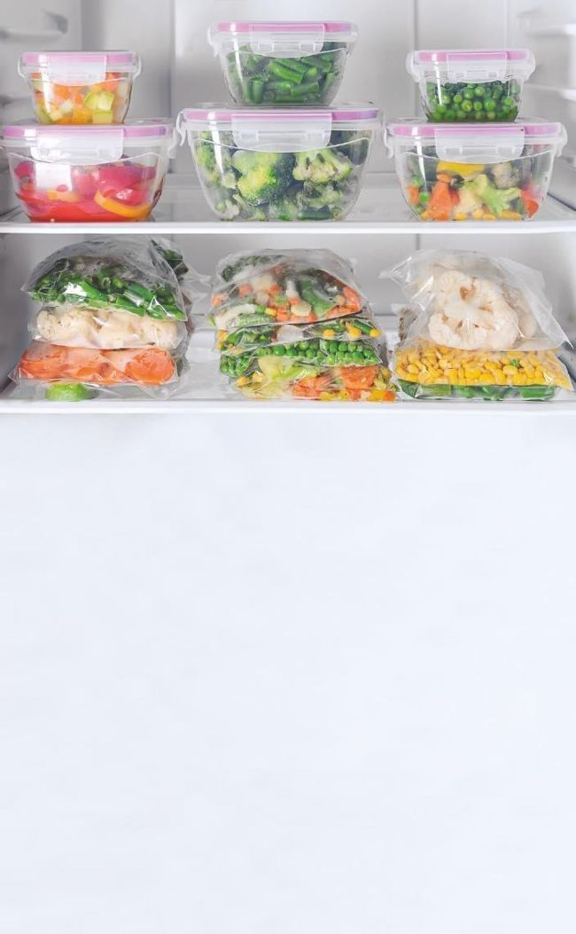 3 PACK WISELY Freeze food in airtight containers or freezer bags to prevent freezer burn and stop food drying out. Fill containers to the top - unless it’s liquid and will expand, in which case leave a 1cm gap.
