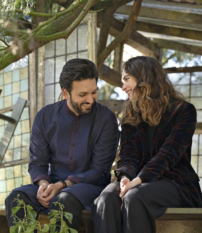 Meet cute? Childhood friends Kazim (Shazad Latif) and Zoe (Lily James).