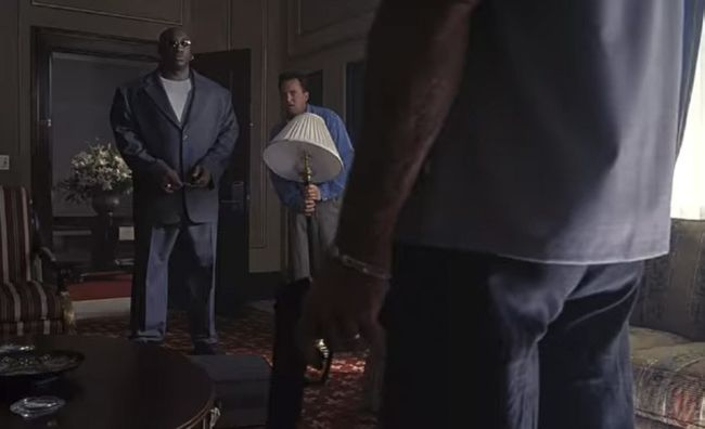 When Perry’s lovable dentist ‘Oz’ Oseransky returns to Montreal from Chicago with hitman Frankie Figs (Michael Clarke Duncan), the last thing he’s expecting as he enters a hotel room is their apparent target Jimmy Tudeski (Bruce Willis) waiting with a martini and a gun. Oz tries to bolt out the door but instead ricochets off Figs, crashing into a standing lamp which he knocks over then cowers behind. Perry doesn’t have a line, but gets the laughs with his physical-comedy chops — a flash of that old Chandler Bing magic.