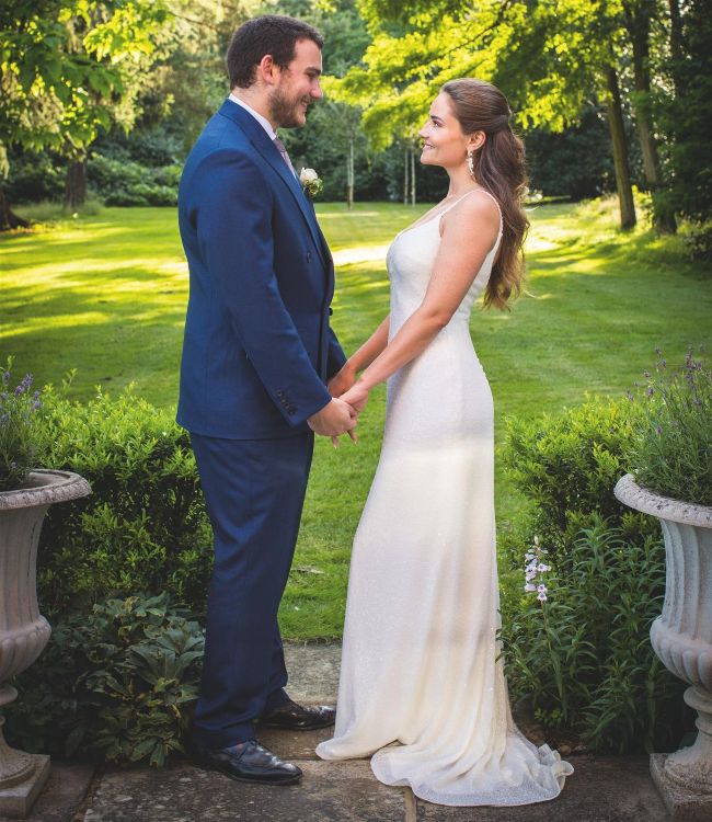 Gazing into each other’s eyes as they celebrate becoming husband and wife, Gabriel and Anouk couldn’t look happier in this picture released by the family after the nuptials