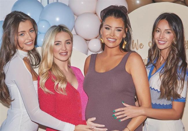 The TV star is joined by (from left) sister Natalya and sisters-in-law Hollie Kane Wright and Michelle Keegan at her baby shower