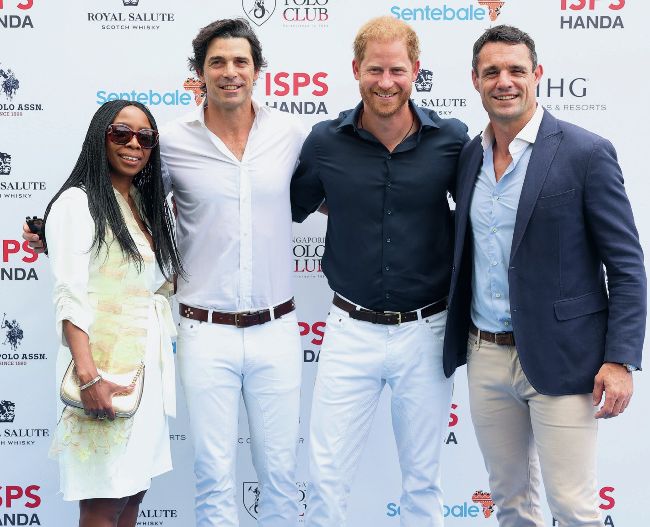 Prince Harry and Nacho are friendly rivals on the field and (below) good pals off, posing with Sentebale chair Sophie Chandauka and former All Blacks rugby union player Dan Carter
