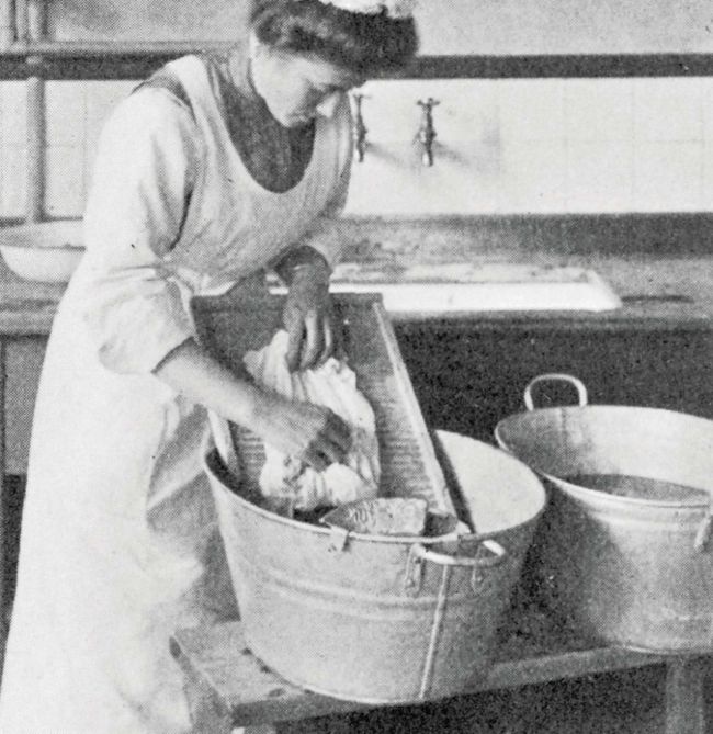 Before the washing machine became a fixture of the home, clothes had to be scrubbed clean