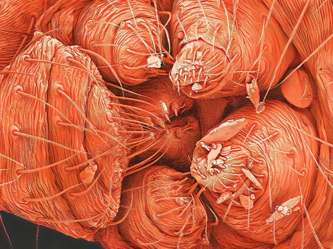 Thes are the tiny structures that give spiders their silk-spinning ability. Known as spinnerets, six telescopic projections are found at the end of the spider’s abdomen and are internally connected to silk-producing glands. At the tip of the spinnerets are nozzle-like structures called spigots, which release a chemical cocktail from the glands that forms robust silk when exposed to oxygen in the air.