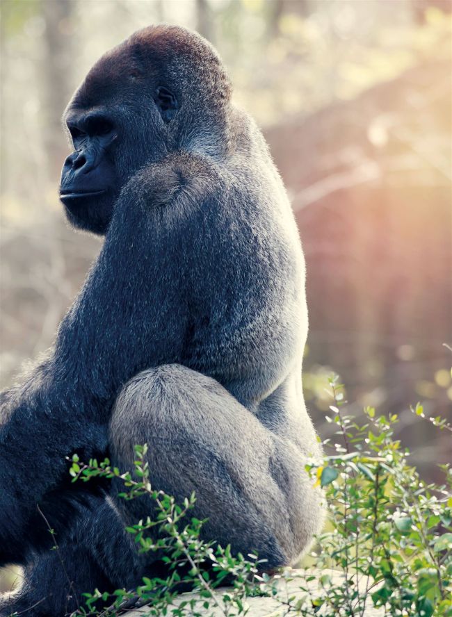 Male gorillas develop a saddle-shaped area of silvery hair on their backs when they reach sexual maturity. Silverback gorillas’ silvery fur is for display, and communicates to other gorillas that they’re adult males. Many other species have equivalent markers performing this function – for example, facial hair in male humans or manes in male lions. A typical gorilla family consists of a dominant silverback male, sometimes other silverbacks that support the dominant male, younger blackback males, adult females, juveniles and infants. The dominant silverback plays an important role in keeping the group together, as well as protecting it.
