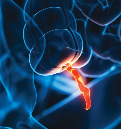 The human appendix is a vestigial organ, which means that it has lost most, if not all, of its function due to evolution. In humans the appendix is a small remainder of the cecum, which our ancestors used to possess. In animals the cecum is still used to break down tough cellulose that’s found in plants. The appendix is located at the join between the large and small intestines and is a small tube with a closed end. If the open end of the tube becomes blocked, the appendix will swell and must be removed to prevent it from rupturing.