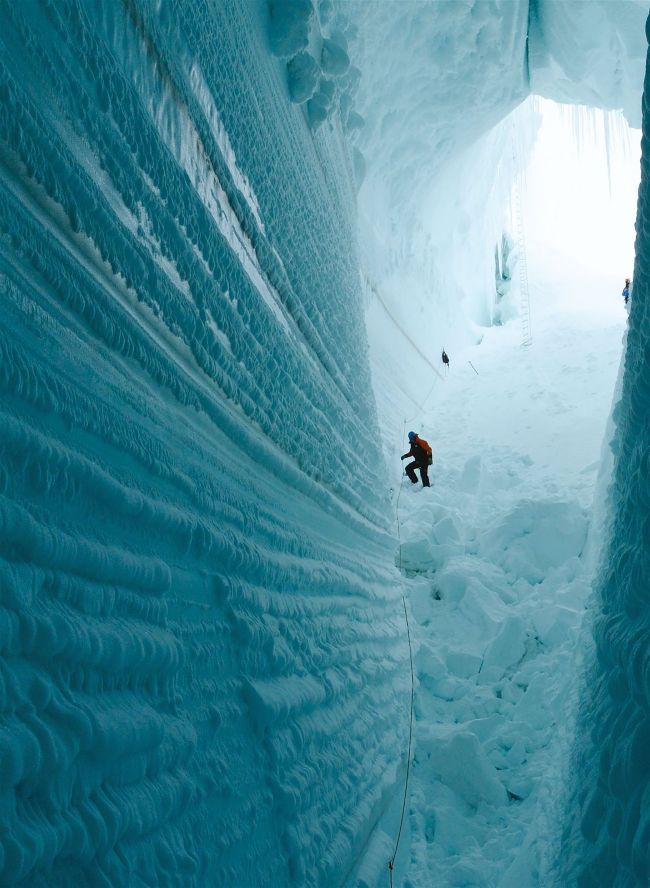 Scientists have long thought that Antarctic ice builds up largely through snow forming layers, like those in sedimentary rocks. But they have discovered that ice sheets might also grow through a process of water thawing and refreezing to the bottom.