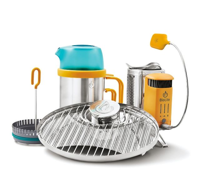Bring your kitchen out on the road with the CampStove Complete Cook Kit by BioLite. Known for its essential camping gadgets, this kit combines all you need to make a great meal outdoors. It includes the smokeless CampStove 2+ along with a Portable Grill, KettlePot and CoffeePress. The CampStove 2+ not only provides a way to cook food, but can convert heat from the fire within into electricity through thermoelectric generation, which is stored in an internal battery to charge your smart devices.