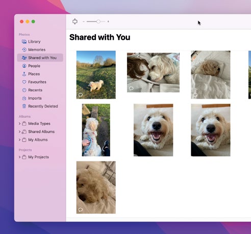 In Monterey, photos, news stories, songs, etc, shared with you through the Messages app will become viewable in the ‘Shared With You’ section of their respective app, such as Photos, News and Music.