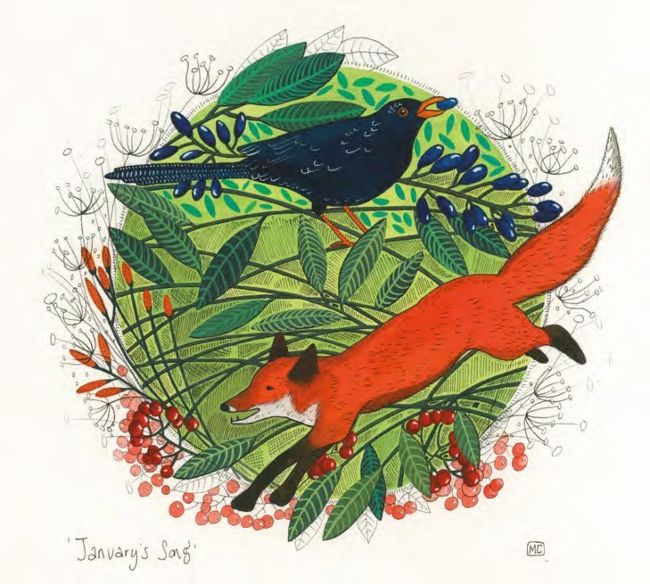 , watercolour, 191⁄2x191⁄2in. (50x50cm). This painting was created using a wet-on-dry method, with a layering technique, a graded wash and dry-brush technique. I also used ink pen to highlight the hand-drawn feel to the painting.