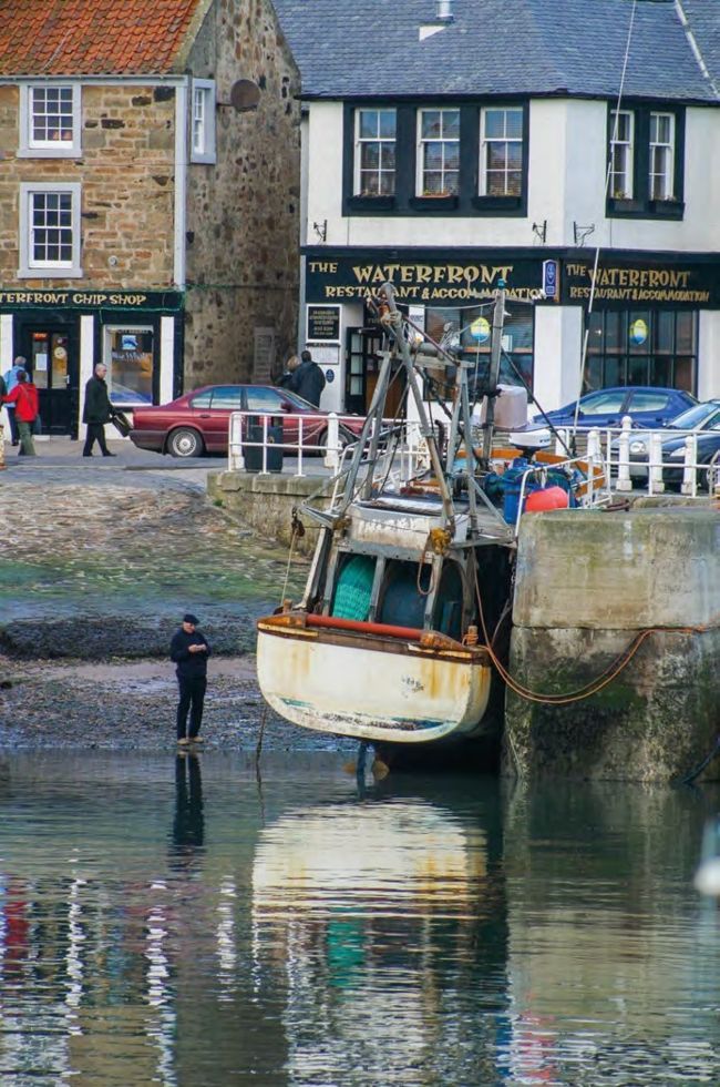 Your reference photograph for this month’s project: a busy scene at Anstruther harbor
