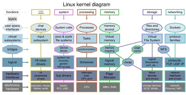 The kernel is made from multiple subsystems and each one is made up of multiple layers.