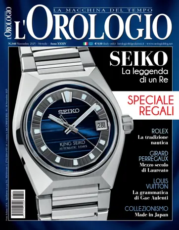 L'Orologio 340 Cover story: Il ritorno di King Seiko, la storia e la sua evoluzione contemporanea. Laureato Fifty: nuova cassa e nuovo movimento per i 50 anni dell’iconico modello di Girard-Perregaux. Guida all'acquisto: idee regalo per il Natale. Monterey: la riedizione del primo orologio Louis Vuitton del 1988 realizzato con Gae Aulenti. Bulova: i nuovi Accutron e Shelby per i 150 anni. Agenhor: una manifattura di movimenti. La prima collezione della Maison indipendente Akhor. Citizen: 55 anni di Super Titanium Storia e collezionismo Made in Japan.