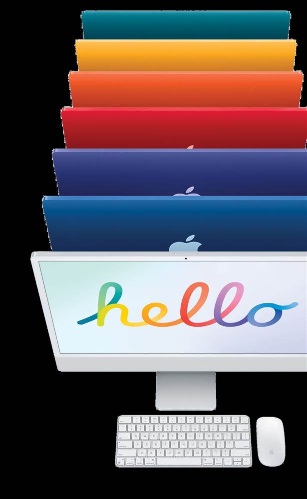 Ever since the Bondi Blue iMac debuted in 1998, Apple’s all-inone desktop computer has been setting standards in gorgeous design and powerful performance. And Apple’s April 2021 Spring Loaded event delivered the new, colourful 24in iMac, available in Green, Yellow, Orange, Pink, Purple, Blue, and Silver. The larger screen has also been bumped up to a 4.5K Retina display with a 4480x2520 resolution.