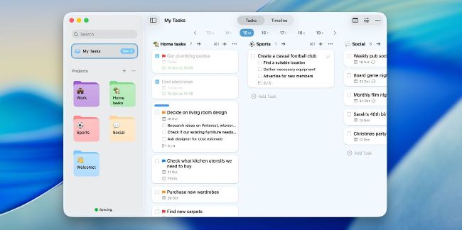 The app can display your task in two ways: a Kanban board, where you drag and drop your tasks from one section to another; or a Timeline mode, where your various tasks are laid out chronologically, so you can swiftly see what needs to be top of your agenda.