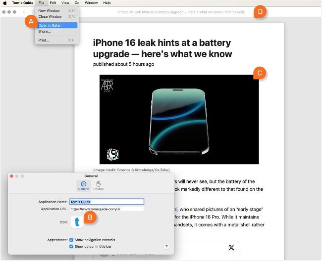 Create web apps from any website and keep them in the Dock