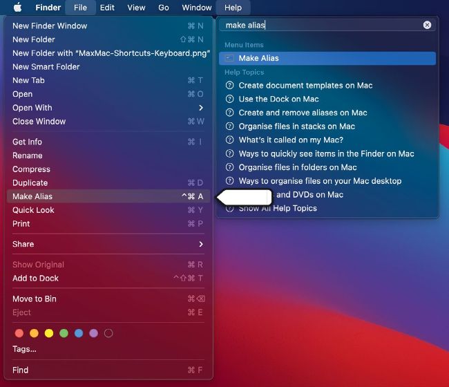 Any menu item in the active app can quickly be triggered from the Help menu.