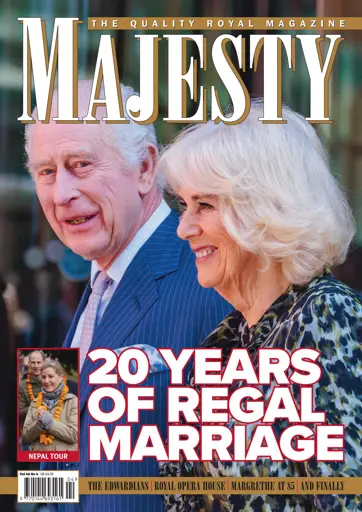 April 2025 In our April 2025 issue: ONWARDS & UPWARDS: After a hellish 2024 the Prince of Wales is re-energised and his engagements are public-facing again, by Victoria Murphy BY ROYAL COMMAND: Queen Victoria enjoyed her visits to Covent Garden and her great-great-great-grandson has followed suit, by Joy Sable MARGRETHE’S NEW LIFE: The former Danish head of state, 85 this month, may have abdicated but she hasn’t retired, by Trond Norén Isaksen MYSTIC MOUNTAINS: The Duke and Duchess of Edinburgh received the warmest of welcomes during six days in Nepal, by Ingrid Seward 20 YEARS ON: King Charles III and Queen Camilla prepare to celebrate their china – 20th – wedding anniversary BEFORE THE LIGHTS WENT OUT: The Edwardians: Age of Elegance exhibition is set to open at the King’s Gallery, Buckingham Palace ROYAL RADIO: The King’s Apple Music playlist is a personal selection of songs from around the Commonwealth that brings him ‘joy’ QUEEN OF THE BELGIANS: Princess Louise of Orléans put exile behind her to marry a king and help found a dynasty, by Coryne Hall And much more besides!