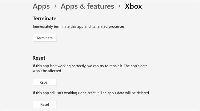 If the Xbox app isn’t loading, or you are unable to download your selected titles, there are several things you can do. First, head to the date & time settings and sync your time. Then, head to the apps & features menu, find the Xbox app, click on the three dots. Select advanced options, then scroll down and click on repair. If this doesn’t fix the problem, hit reset and this should resolve these issues.