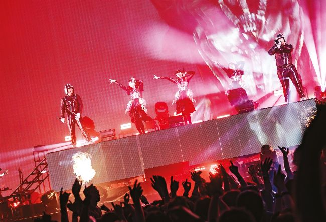 IF HAVING YOUR own festival is a signifier of how massive a band have become, then Babymetal have arrived. In May, the Japanese trio hosted the first Fox_Fest over two nights at the Saitama Super Arena, half an hour north of Tokyo. During their headline sets, they brought Germany’s Electric Callboy out for the live debut of RATATATA, their recently released collaborative single.