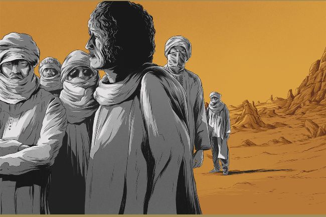 Though he was released, it was clear being part of a collective whose mythos included taking up arms against the Malian government was no guarantee of well-being. If business had to be attended to, it was going to have to be done elsewhere. Given, however, the musicians’ unease in cities, where they feel constricted by walls and regulations, they couldn’t just book any old Abbey Road. Emmaar (2014) and Elwan (2017) were recorded in – where else? – Joshua Tree, where the rocky landscapes of the Mojave Desert meet the dunes of the Colorado Desert. Out of the box, then, the most surprising thing about Tinariwen’s ninth studio LP is that it has taken this long for Daniel Lanois, an integral part of U2’s ascendancy, to be called on to occupy the producer’s chair.