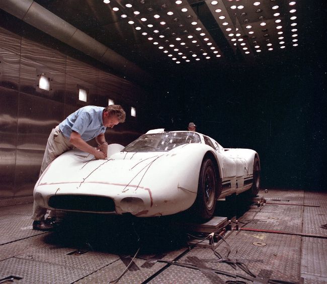 Phil Remington in the Ford wind tunnel testing the bodywork modifications he’d made a few days earlier to the J-Car. When the new bodywork was finalised, the car was renamed the Mark IV and won Sebring and Le Mans in its only two competitive outings