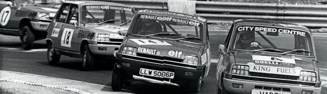 The TVR Tuscan Challenge, around since 1989, was an inspiration for Rover in the 1990s. Above: squealing French superminis in the 1976 UK Renault 5 Cup
