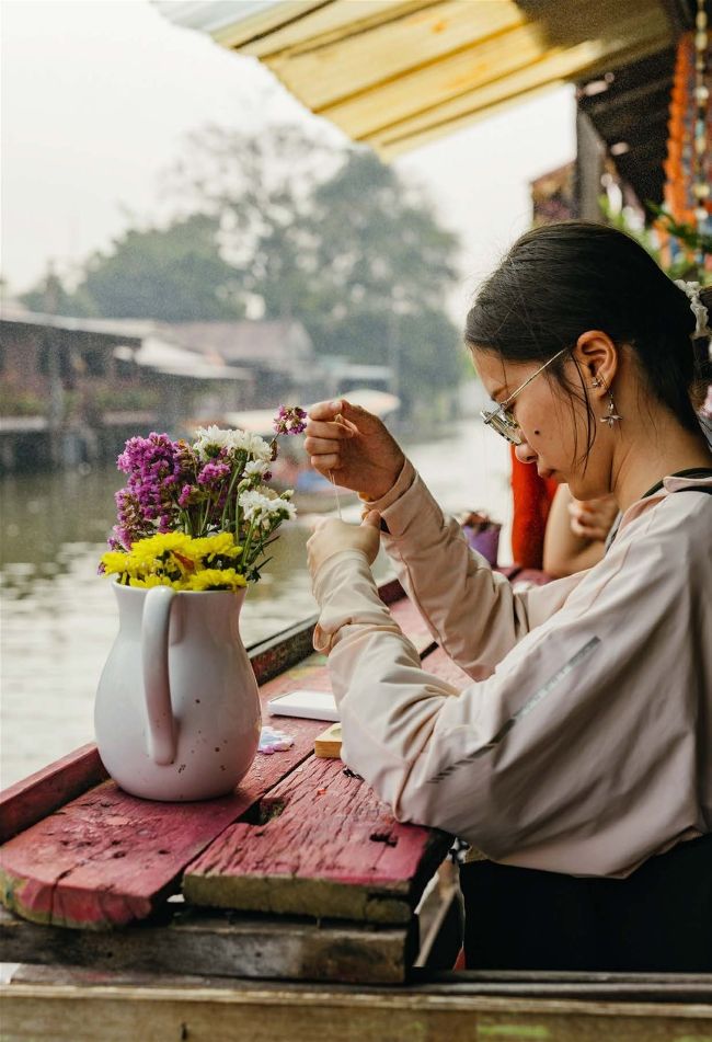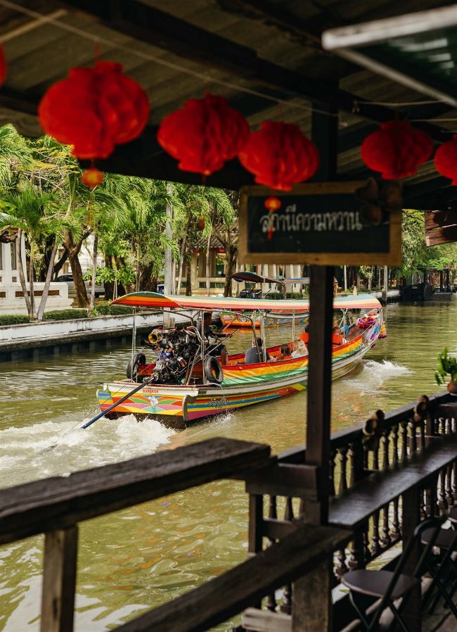 Captain Tai is the embodiment of Zen. He hops onto the deck of his royal-blue wooden boat, twiddles a few switches and we glide away from the canal bank in silence. Around us in the neighbourhoods that stem from the western banks of the Chao Phraya River, longtail boat owners race along the water, engines roaring, faces crumpled in scowls. But Captain Tai? Smiling.