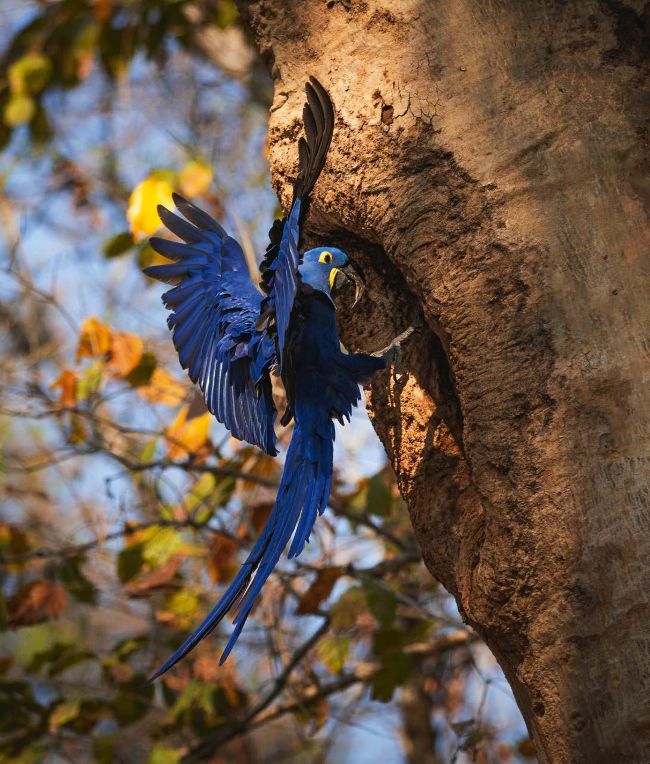 A visit to the northern Pantanal begins with a journey along the dirt Transpantaneira Road to the gateway town of Porto Jofre. Encounters with pantaneiros (local cattle herders) are common as they cross wooden bridges, essential for navigating the flooded landscape during wet season. While ranching has long coexisted with the region’s biodiversity, intensive livestock production and infrastructure development threaten the delicate balance. The hyacinth macaw is one victim. The species relies on manduvi trees, whose natural cavities make them ideal for nesting and raising chicks; deforestation means this precious habitat is dwindling.