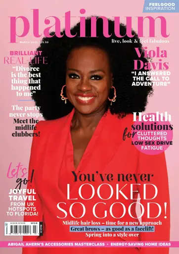 In this month's Platinum - VIOLA DAVIS: So talented and true to herself. CLUTTERED THOUGHTS & OVERWHELM: For many, a midlife ADHD diagnosis is a relief. THE PARTY NEVER STOPS: The joy of clubbing at any age. MIDLIFE HAIR LOSS: Rethink it! ACCESSORIES MASTERCLASS: Stylish ideas from design guru Abigail Ahern. SPRING INTO A STYLE-OVER: New season, new look, increased confidence. GREAT BROWS: So simple, yet a few tweaks make such a difference. ROMANTIC UK HOTSPOTS: Just made to fall in love with!