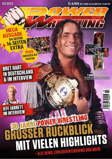 Es gibt auch mehrere Rückblicke auf 30 Jahre Power-Wrestling. U.a. auch einen sehr persönlichen von mir mit einigen SEHR offenen Worten zur WWE und AEW – diese mussten einmal gesagt werden. Weitere Rückblicke gibt es von Walandi Tsanti, der Redaktion und auch wie Power-Wrestling und Bret Hart im Magazin immer ein besonderes Verhältnis hatten. Die 30 Jahre finden sich auch in einem mit DinA2 besondes großen Poster wieder, in dem die wichtigsten Wrestler dieses Zeitraums dargestellt werden. Auf weiteren Postern findet Ihr die beiden Royal Rumble-Gewinner Charlotte Flair und Jey Uso, Jeff Jarrett, Megan Bayne sowie ein gemeinsames Poster von Evil Jared und Roni Harting. Mit Evil Jared gibt es auch ein Interview.