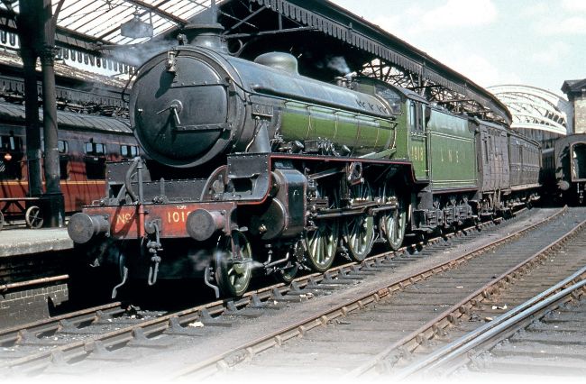 In his short tenure as CME of the LNER, Edward Thompson’s most numerous design was the mixed traffic ‘B1’ 4-6-0, of which 410 were built, including 136 after Nationalisation. As LNER No. 1018 Gnu, the loco sits at York in one of the south facing bay platforms.