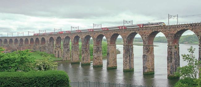 Class 91 No. 91119 heads north across the Royal Border Bridge on May 30, 2019 with the 06.15 King’s Cross to Edinburgh train. Maintenance work will begin on the south side where the viaduct is on land.