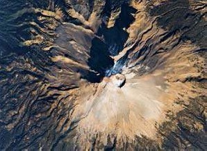 Astronaut photograph of the summit crater of Popocatepetl (at center) also highlighting Ventorillo and Noroccidental Glaciers. (Image Science & Analysis Laboratory, NASA Johnson Space Center, ISS Expedition 18, via Wikimedia Commons)