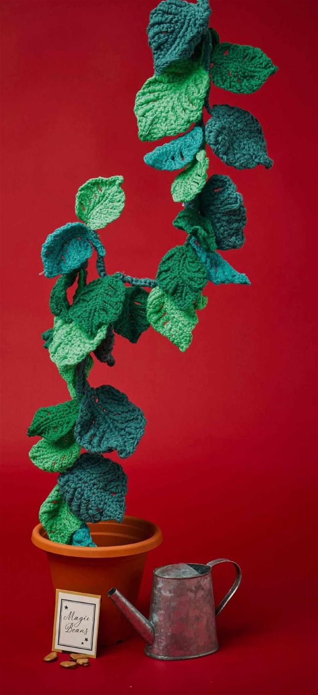 See how long you can make this leafy beanstalk, then prop it up using wires or hang it as a garland.